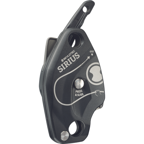 Skylotec SIRIUS A-050 standards: EN 12841-C: 2006, EN 341-2A: 2011 weight: 0.51 kg CHARACTERISTICS: rescue, securing, abseiling, positioning equipment, rescue of two people, maximum load 250 kg, suitable for ropes o diameter 10-12 mm, automatick lock function, anti panic function Usage: telecommunications, wind turbines roofs, mobile platforms, steel columns, steel structures, scaffolding, wooden columns