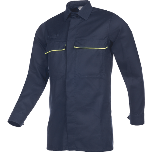 • men's shirt with ARC protection • flame retardant and anti-static • closure with hidden press studs under flap • breathable fabric with excellent moisture regulating properties • 2 chest pockets closed with press studs flap cover with contrasting piping • sleeve nerrowing by press studs