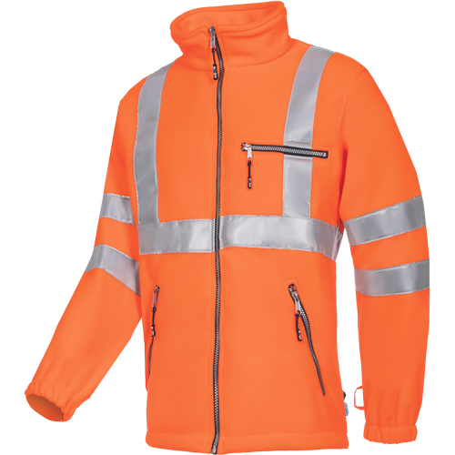 • HI-VIS fleece jacket with zipper closure • 2 side pockets, 1 chest pocket • elastic sleeves hems • reflective stripes
