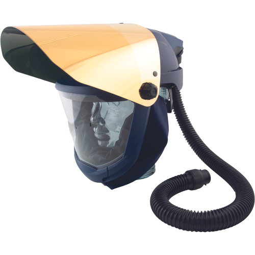 Safety helmet SR 580 with a gold plated shield. Suitable when work is performed in extreme heat as the shield significantly reduces radiant heat.