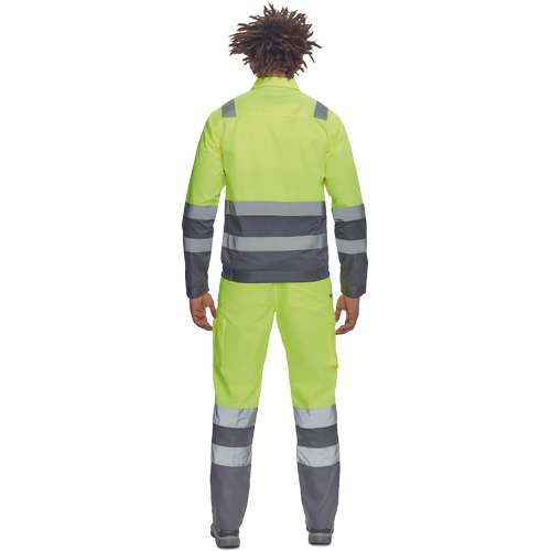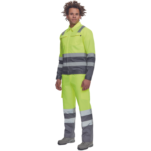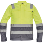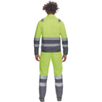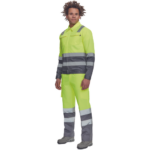 Szyte rękawice Hi-Vis wykonane z mieszanki poliestru i Spandexu wzmacniane syntetyczną skórą w części chwytnej i na koniuszkach palców. W części chwytnej dłoni silkonowy zadruk dla zwiększonej chwytności, neoprenowy mankiet zapinany na rzepy Velcro. Wstawka frotte chłonąca pot na wierzchniej części kciuka.