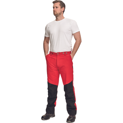 Spodnie dla pilarzy • przednie wzmocnienia wodoszczelną membraną Hydura® • zapinane z przoduna zamek błyskawiczny i jeden guzik • dwie wpuszczane kieszenie, jedna, naszywana tylna kieszeń z klapką • jedna kieszeń na linijkę • elastyczny pas ze szlufkami na pasek i guziki umozliwające zapięcie szelek • podwójne, wzmacniająceprzeszycia z tyłu po wewnętrznej stronie nogawek