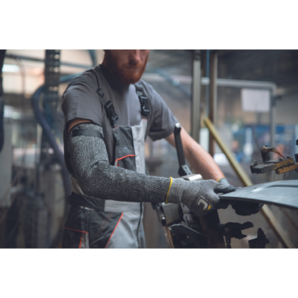 Zarękawek antyprzecięciowy - poziom odporności na przecięcie D - bezszwowa dzianina wykonana jest ze specjalnych włókien, o naturalnym efekcie chłodzącym; zarękawek posiada otwór na kciuk i palce oraz zapięcie na rzep dla lepszego mocowania do ramienia; dostępny w kilku wariantach szerokości (N - wąski, W - szeroki. XW - ekstra szerok).