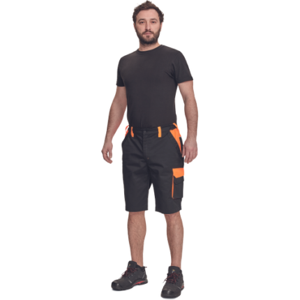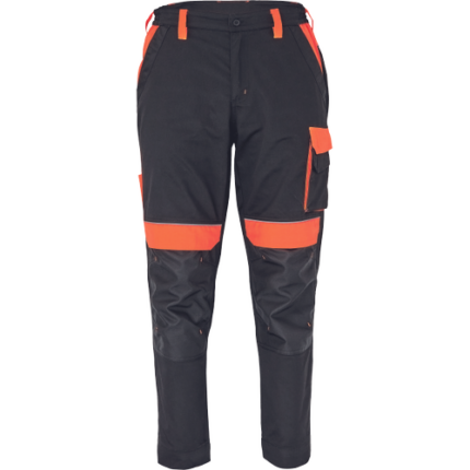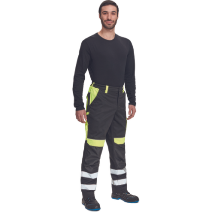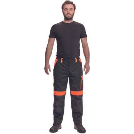 • męskie spodnie robocze z elementami odblaskowymi elementami, z elastycznym pasem • 2 kieszenie boczne, 1 kieszeń na lewym udzie • 2 kieszenie tylne • 2 małe kieszenie tylne na prawym udzie • dwie naszywane taśmy odblaskowe o szerokości 5 cm w dolnej części nogawki. odblaskowe lamówki • wzmocnienia na kolanach z materiału Oxford 600D oraz kieszenie z patką z możliwością włożenia nakolanników • możliwość wydłużenia nogawek