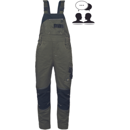 • męskie robocze spodnie ogrodniczki • elastyczny, innowacyjny materiał Trifibetex® • wytrzymałe potrójne szwy nogawek i w kroku • wzmocnienia CORDURA® na kolanach • 1 duża, wielofunkcyjna kieszeń na piersi • 2 przestronne kieszenie z przodu • 2 wielofunkcyjne kieszenie na udach • 2 tylne kieszenie zapinane na rzep • odblaskowe detale ton w ton • możliwość wydłużenia nogawek
