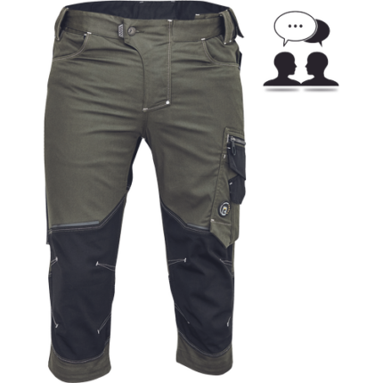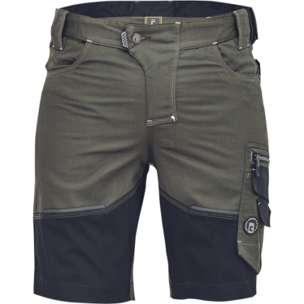 • męskie szorty robocze z elastycznego materiału Trifibetex® • 2 przednie kieszenie klinowe, 2 tylne naszywane kieszenie zapinane na rzep, po lewej stronie duża kieszeń wielofunkcyjna, po prawej stronie wielofunkcyjne kieszenie na miarę i nóż + uchwyt na ołówek, metalowy pierścień „D”, paski na narzędzia • patent elastycznego pasa • ozdobne potrójne szwy w kontrastowym kolorze • odblaskowe detale ton w ton