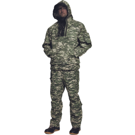 • przeznaczony do ochrony przed roztoczami, komarami, muszkami, komarami i innymi rodzajami owadów wysysających krew • elementy ochronne kombinezonu: pułapki przeciw roztoczy w plisowanej kurtce i spodniach, zapobiegające czołganiu się roztocza przez odzież • wewnętrzne mankiety rękawów i spodnie ściśle przylegają • kaptur z moskitierą (w razie potrzeby siatka łatwo mieści się w kieszeni na piersi) • pętle na stopy bezpiecznie zwężają nogawki spodni