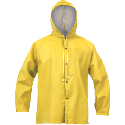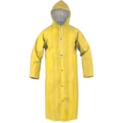 • wodoodporny komplet składający się ze spodni i kurtki z kapturem • zapinany na zatrzaski • regulacja obwodu kaptura za pomocą sznurka • wentylacja pod pachami • spodnie z elastycznym pasem • mankiety rękawów i dół nogawek z możliwością dostosowania za pomocą zatrzasków • kryte szwy • komplet w 100% z recyklingu