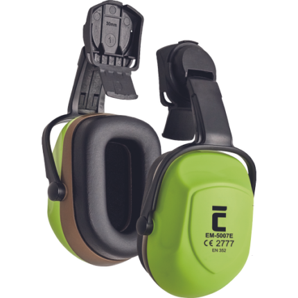 Dielektryczne ochronniki słuchu mocowane do kasków bezpieczeństwa (otwory 30 mm) o łagodnym i stabilnym teleskopowym mechanizmie regulacyjnym. Czasze wypełnione miękką pianką. Specjalny, niski profil łączenia czasz z elementem mocującym do kasku minimalizuje ryzyko zahaczenia o przeszkody w wąskich przestrzeniach, nawet w pozycji gotowości do pracy. 252 g, EN 352-3:2002.