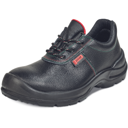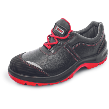 Klasyczne półbuty ochronne ze stalowym podnoskiem, który chroni przed naciskiem z siłą do 15 kN lub ładunkiem do 20 kg z wysokości 1m. Podeszwa posiada doskonałe właściwości antypoślizgowe i jest również odporna na oleje i ścieranie. Cholewka z dwoiny skórzanej odporna na penetrację i wchłanianie wody; wyściółka wewnętrzna wykonana z oddychającego poliestru. Dzięki doskonałej relacji cena/jakość model spełnia oczekiwania szerokiego grona odbiorców.