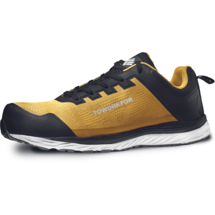• top safety model from portugeese producer, company TO WORK FOR • shoes are extremely breathable and flexible thanks to materials and components used in production process • upper is made from breathable 3D AIR FLOW mesh with TPU cover which protect toe area • aluminum toe cap protects against impacts of 200 Joules, which is equivalent to a 20 kg load falling from a height of one metre, and against crushing with a force equivalent to 1500 kg • aditionally aluminum toe cap is very light, thin, does no corrode and is not electrically conductive • FLOAT zero perforation non-metallic midsole is extremely light, flexible and guarantees comfort at every step • TRIPLE SPEED SOLE is made from combination ultralight Eva Safety and high resistant rubber • removable insole is made from active foam which helps to prevent muscle fatigue, while relieving heel pressure • additionally shoes are equipped with ESD function • thanks to the used materials and components total weight of half pair (size 42) is just 580g • the unique sporty design of this model is additional, important benefit for those who want to look cool at work