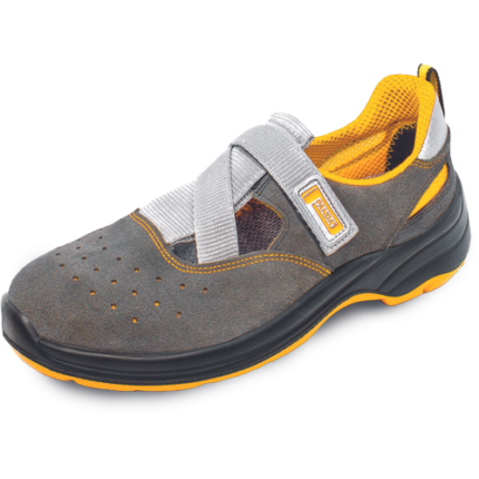 Nowoczesne, sandały ochronne wyposażone w kompozytową, antyprzebiciową wkładkę i kompozytowy podnosek. Antystatyczna podeszwa zewnętrzna wykonana z połączenia poliuretanu i bardzo wytrzymałej gumy zapewnia nie bezpieczeństwo (dzięki właściwościom antypoślizgowym) jak również odporność na oleje i ścieranie. Wierzchnia część obuwia wykonana jest z naturalnej skóry nubukowej, zaś wewnętrzna wyściółka z oddychającego poliestru. Elementy odblaskowe zwiększają widoczność. Model ten wyposażony jest w wygodną wkładkę wewnętrzną, która dzięki żelowej części piętowej wpływa na lepszą amortyzację wstrząsów i zapewnia maksymalne poczucie komfortu podczas pracy. Buty posiadają sportowy design i jednocześnie bardzo dobrze chronią stopę. W każdym opakowaniu znaleźć można dodatkową parę sznurowadeł.