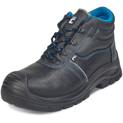 Wysokie trzewiki ochronne ze stalowym podnoskiem i stalową wkładką antyprzebiciową. Antystatyczna, olejoodporna podeszwa wykonana z PU/ PU. Absorpcja energii w obcasie. Cholewka wykonana z czarnej, wodoodpornej zadrukowanej skóry typu Buffalo. Od wewnątrz ocieplane, wyściełane szarym, sztucznym futerkiem.