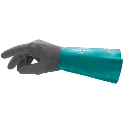 Odporne na czynniki chemiczne, antystatyczne rękawice wyprodukowane w technologii Ansell Grip Technology, antypoślizgowe wykończenie w części chwytnej dłoni i na jej grzbiecie, z nylonową podszewką wewnątrz. 356 mm