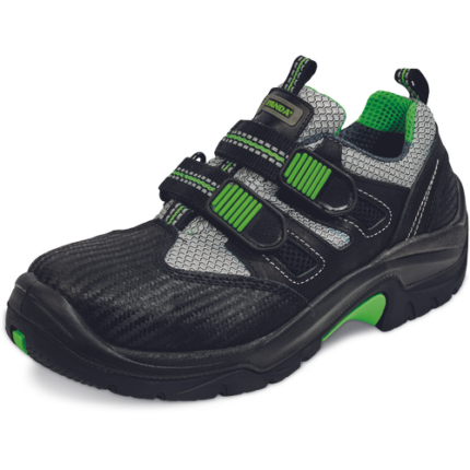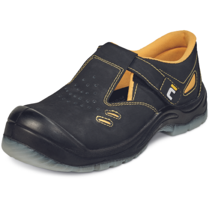 Sandały ochronne z kompozytowym podnoskiem. Antypoślizgowa, olejoodporna podeszwa PU/TPU/TPU. Cholewka wykonana z połączenia następujących materiałów: wysokiej jakości naturalna skóra licowa z wykończeniem „rufino" w okolicach pięty i podnoska, wysokiej jakości skóra licowa typu „crazy horse" z ochronną, woskową powłoką oraz trwały materiał typu mesh z mikrokanalikami zapewniającymi wysoką oddychalność. Dodatkowe nylonowe elementy odblaskowe dla podniesienia widoczności użytkownika.