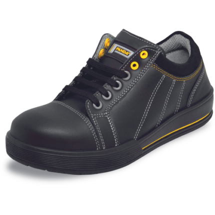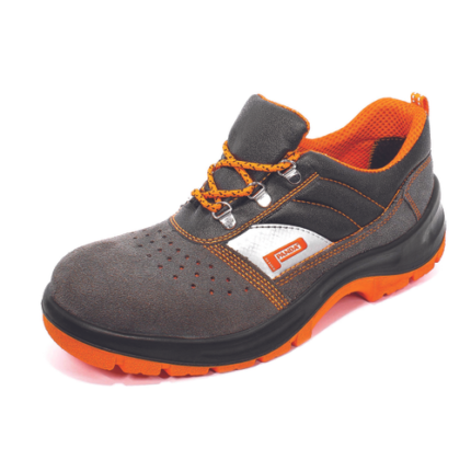 Półbuty bezpieczne ze stalowym podnoskiem chroniącym przed naciskiem do 15 kN lub upadkiem ładunku do 20 kg z wysokości 1m. Antystatyczna podeszwa wykonana z poliuretanu podwójnej gęstości gwarantuje nie tylko komfort, ale również bezpieczeństwo dzięki stalowej, antyprzebiciowej wkładce i antypoślizgowych właściwościach podeszwy, która jest również odporna na oleje i ścieranie. Cholewka obuwia wykonana jest ze skóry zamszowej Alvier z perforacją, zaś wewnętrzna wyściółka z oddychającej siateczki. Ten model należy do kolekcji obuwia Basic Neos.