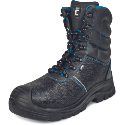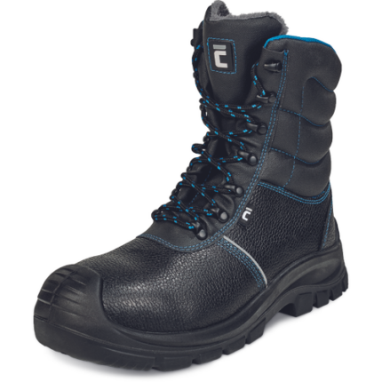 Wysokie trzewiki ochronne ze stalowym podnoskiem i stalową wkładką antyprzebiciową. Antystatyczna, olejoodporna podeszwa wykonana z PU/ PU. Absorpcja energii w obcasie. Cholewka wykonana z czarnej, wodoodpornej zadrukowanej skóry typu Buffalo. Od wewnątrz ocieplane, wyściełane szarym, sztucznym futerkiem.