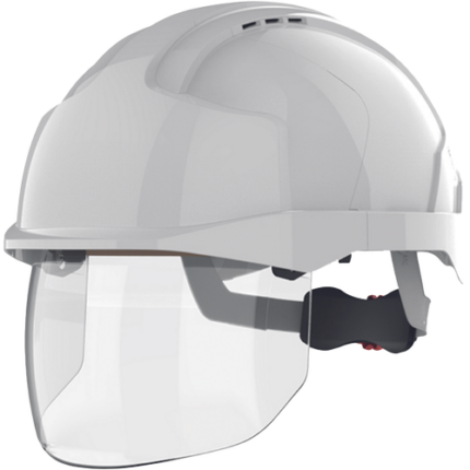 EVO® VISTAshield® is a next generation feature-rich safety helmet based on the proven Evolution® head protection technology. Incorporating a fully retractable optical class 1 integrated faceshield offering A-RATED IMPACT PROTECTION. The eyewear is easy to deploy, adjust and maintain ensuring protection is on hand whenever it is required.