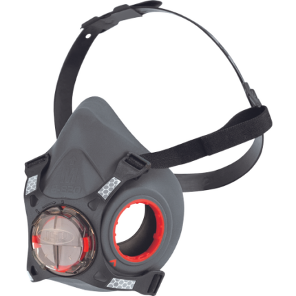 The Force8 twin cartridge half mask with Typhoon valve offers superior low breathing resistance and a 4-point suspension harness with quick release buckles. The mask is made with a durable thermoplastic rubber offering a superior fit to most face shapes. The mask accepts the full range of low profile Force8 filters giving the Force8 the flexibility to be used for many applications, providing filtering protection against particulates, many gases and vapours.