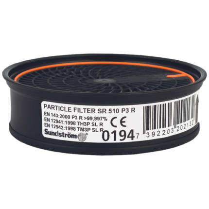 Filtr przeciwpyłowy SR 510 P3 R* przeznaczony jest do stosowania w maskach, półmaskach i systemie wentylacyjnym SR 500/SR 500 EX/SR 700. Chroni przed wszelkimi stałymi cząsteczkami. Filtr można stosować w kombinacji z pochłaniaczami Sundström, dzięki czemu uzyskuje się również ochronę przed gazami i oparami, np. przy lakierowaniu natryskowym. Filtr przeciwpyłowy należy dodatkowo chronić filtrem wstępnym SR 221 w celu wydłużenia żywotności filtra P3. Jednostka wentylująca SR 500/SR 500 EX musi być używana zawsze z 2 filtrami przeciwpyłowymi lub 2 kombinacjami filtrów i pochłaniaczy. *R (Re-useable): Filtr przewidziany jest do używania w okresie dłuższym niż jedna zmiana robocza.