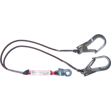 SKYSAFE PRO FLEX Y is a damper with a connecting means of two elastic straps; integrated rescue trauma loop; the ends of the straps are fitted with aluminum hooks FS 64 ALU (opening 64 mm, latch 16kN, in the axis 28 kN); on the shock absorber there are KOBRA AL TRI aluminum carabiners absorption of fall energy up to 6 kN, max. impact resistance 22 kN carabiners resistant to stress on the fracture and through the latch; field of application: wind power plants, electrical transmission systems, telecommunications; system length 1.8 m; load capacity 50-140 kg; weight 2.3 kg; meets EN 354:2010 and EN 355:2002 standards