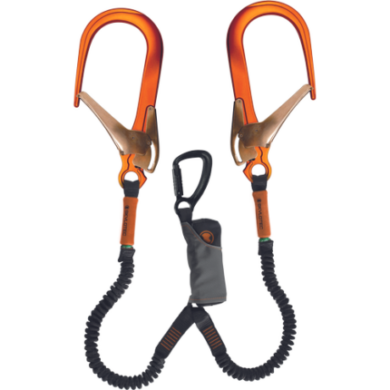 SKYSAFE PRO FLEX Y is a damper with a connecting means of two elastic straps; integrated rescue trauma loop; the ends of the straps are fitted with aluminum hooks FS 64 ALU (opening 64 mm, latch 16kN, in the axis 28 kN); on the shock absorber there are KOBRA AL TRI aluminum carabiners absorption of fall energy up to 6 kN, max. impact resistance 22 kN carabiners resistant to stress on the fracture and through the latch; field of application: wind power plants, electrical transmission systems, telecommunications; system length 1.8 m; load capacity 50-140 kg; weight 2.3 kg; meets EN 354:2010 and EN 355:2002 standards