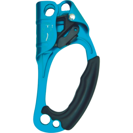 a rope access clamp is available in left and right versions; it is entirely made of aluminum (frame) and stainless steel (clamp); between the teeth there are holes for cleaning the rope from mud and other dirt, so you don't have to worry about the device being damaged by them; the product has an innovative solution of the rope clamping system; the lock is made of steel alloy, which makes it more durable than other devices of this type; for use on ropes with diameters of 8-13 mm; weight 225 g