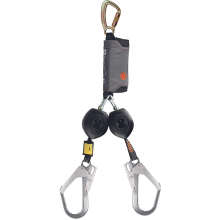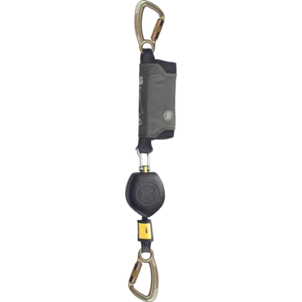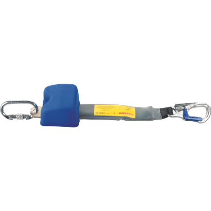 Peanut Y EN360 Ultra-compact fall protection device with FS 90 ST carabiner 60mm on anchoring. The Peanut is already equipped with the new One-4-All shock absorber and therefore approved for the weight class 50-135kg. 2.5 m length for use in scaffolding, steel structure, telecommunication, electrodistribution