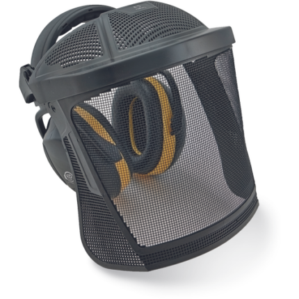 Zestaw wyprodukowany przez szwedzką firmę Helberg: siatkowa osłona twarzy wykonana poliwęglanu wraz z nausznikami ED 2H Ear Defender. Świetna wentylacja. Ochrona przed olśnieniem słonecznym, ryzykiem mechanicznym - odporność na uderzenie o średniej energii (klasa B). Ochrona przed odpryskami stopionego metalu. Maksymalny komfort i ochrona dla użytkowników niepotrzebujących ochrony głowy. Długość osłony: 200 mm, waga:74g. Grubość 1 mm. Dostępne zestawy higieniczne. Możliwość zamówienia dodatkowej osłony.