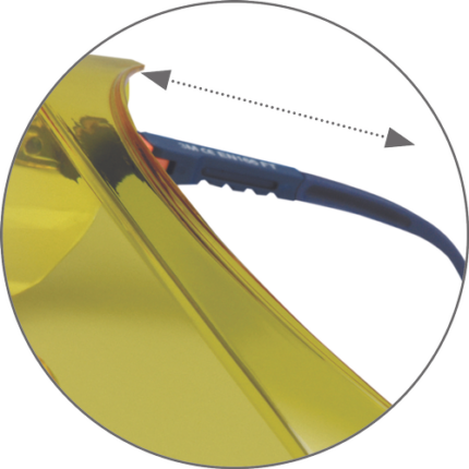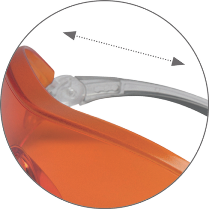 Okulary ochronne (38 g), wytrzymałe szybki poliwęglanowe z powłoką zabezpieczającą przed zarysowaniem, regulowana długość ramion (czterostopniowa), regulowany kąt nachylenia szybek, uniwersalne wykonanie umożliwia wykorzystanie z wieloma różnymi okularami korekcyjnymi, wygodne, miękkie ramiona o niskim profilu gwarantują dobre dopasowanie do każdych okularów korekcyjnych. Dostarczane są w dwóch wersjach: bezbarwne oraz żółte dla zwiększenia kontrastu przy słabym świetle.