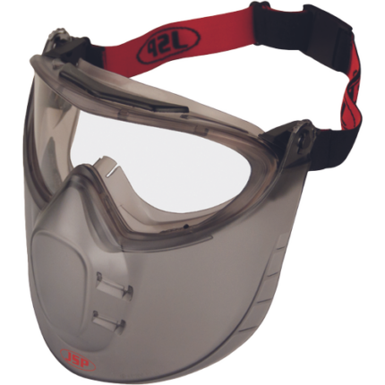 a unique combination of glasses with indirect ventilation and face protection with an elegant modern design; the Stealth™ 9200 has been designed to offer superior performance, comfort and appearance; the face shield can be raised when not in use; protection against dust, liquid splashes, molten metal and UV radiation; complies with EN 166 1B.T.3.4.9.N and EN 170 2-1.2