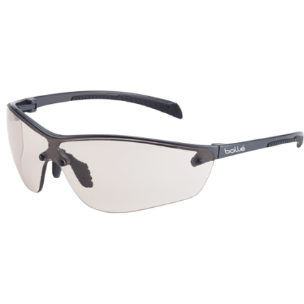 Safety glasses with clear lenses are essential indoors. Bollé Safety clear lenses provide 90% light transmission. Is compatible with the PLATINUM anti-fog coating. SILEX+ offers all the advantages of SILEX and is equipped with our exclusive PLATINUM coating for long-lasting protection against fogg and scratch. In order to cover all activities requiring alternating high and low light exposure, SILEX+ is available in a Copper version, a technology that also effectively fights against blue light. Protection, Comfort and... Style, SILEX+ is available with new temples colour combinations; panoramic field of view; FLEX 160° temples to adapt to all heads and reduce pressure points; PLATINUM coating : anti-scratch & anti-fog