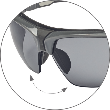 Ultra-light frame using overmould thermoplastic rubber and soft-touch, ergonomically designed arms for stability and comfort. The lens provides more protective coverage with better sight lines for a greater field of view. With floating and adjustable TPE-covered nose bridge, for more comfort and better grip.