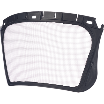stainless steel mesh face shield in black matte finish; thanks to the snap function, it can be quickly and easily attached to the face shield holder; is intended for use with 3M™ G3000/G22/X5000/X5500 series hard hats; 3M™ 5C mesh face shield has been tested and approved according to EN 1731:2006; provides protection against flying particles, sawdust, flying chips and splinters