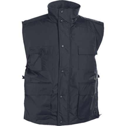 • wodoodporna, ocieplana kamizelka • przedłużany tył • tkanina wykonana z mieszanki nylonowych włókien, z wykończeniem RipStop • dół kamizelki z możliwością regulacji obwodu za pomocą elastycznego sznurka • dostosowana do haftu maszynowego • możliwość regulacji obwodu kamizelki za pomocą bocznych suwaków