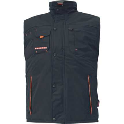 • wodoodporna, ocieplana kamizelka • przedłużany tył • tkanina wykonana z mieszanki nylonowych włókien, z wykończeniem RipStop • dół kamizelki z możliwością regulacji obwodu za pomocą elastycznego sznurka • dostosowana do haftu maszynowego • możliwość regulacji obwodu kamizelki za pomocą bocznych suwaków