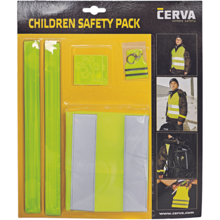 • zestaw ostrzegawczy dla dzieci: kamizelka ostrzegawcza, odblaskowe opaski snap-on na nadgarstek, odblaskowe naklejki i odblaskowy brelok • przeznaczone dla dzieci powyżej 3 r. ż. o wzroście 120–140 cm do noszenia na odzież. Ma na celu wizualne sygnalizowanie obecności użytkownika i zapewnienie jego widzialności w każdych warunkach niezależnie od pory dnia i oświetlenia. • spełnia wymogi normy EN 1150. zarówno w dzień, jak i w nocy. Norma EN 1150
