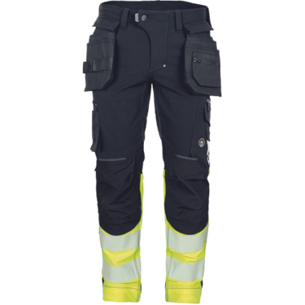 • męskie spodnie robocze wykonane z unikalnego materiału typu 4 way stretch TRIFIBETEX PRO® i TRIFIBETEX VIS® • multifunkcyjne, odpinane kieszenie • na kolanach wzmocnienia z materiału CORDURA® • paski na narzędzia • patent elastycznego pasa, nadrukowane taśmy odblaskowe o szerokości 7,5 cm • możliwość wydłużenia nogawek • odblaskowe detale ton w ton • możliwość włożenia nakolanników