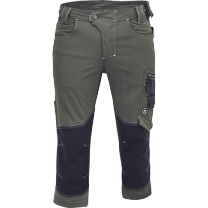 • męskie spodnie robocze 3/4 wykonane z unikalnego materiału TrifibetexPRO® (czterokierunkowy nylon) • 2 przednie kieszenie klinowe, 2 tylne naszywane kieszenie zapinane na rzep, po lewej stronie duża kieszeń wielofunkcyjna, po prawej stronie wielofunkcyjne kieszenie na miarę i nóż + uchwyt na ołówek, metalowy pierścień „D”, wzmocnione nakolanniki z tkaniny CORDURA, paski na narzędzia • patent elastycznego pasa • ozdobne potrójne szwy w kontrastowym kolorze • odblaskowe detale ton w ton