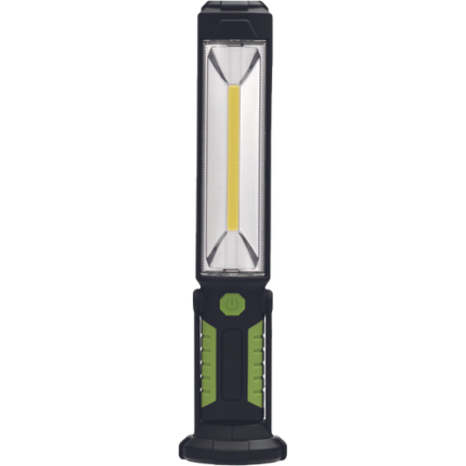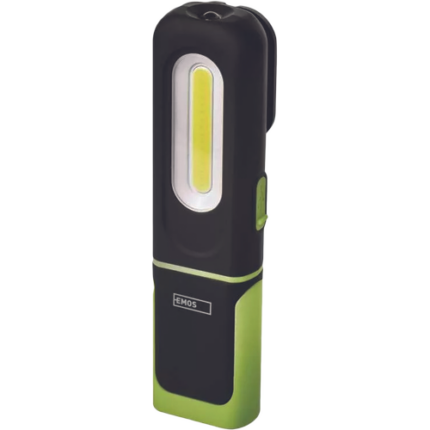 zastosowanie: do prac, w których potrzebne jest źródło światła • 3 W COB LED •2 tryby: włączony i wyłączony• zasilanie: 3× 1.5V AAA (AAA bateria) • materiał obudowy: tworzywo ABS • zasięg: 20 m • maksymalny czas świecenia: 20 godzin • maksymalny strumień świetlny : do 200 lm • haczyk tak • magnes: tak • akcesoria: ruchomaa rączka • wymiary 60 × 30 × 132 mm • kolory: czarny, pomarańczowy • gniazdo (obudowa żarówki) LED