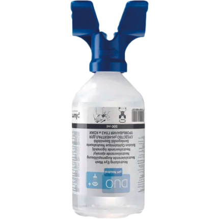 Mała, higieniczna i poręczna butelka zawiera 4.9% sterylny, buforowy roztwór fosforowy do stosowania po wypadkach, w wyniku których dochodzi do skażenia lub poparzenia oczu kwasami lub zasadami. Butelka łatwo mocuje się na pasku w specjalnie zaprojektowanych futerałach, w apteczkach pierwszej pomocy lub skrzynkach narzędziowych. Komplet z ergonomiczną końcówką dostosowaną do kształtu oczu, zamknięciem uniemożliwiającym dostanie się kurzu oraz wyraźną instrukcją. Trwałość: 3 lata.