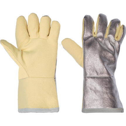 Komfortowe, pięciopalcowe rękawice ochronne. Z powłoką aluminiową. Szeroki krój zapewnia użytkownikowi większy komfort. Trójwarstwowa struktura: zewnętrzna powłoka wykonana z materiału, środkowa warstwa izolacyjna z filcu, warstwa wewnętrzna będąca w kontakcie ze skórą wykonana jest w 100% z bawełny. Mankiety wykończone są skórą, co zmniejsza ryzyko poparzenia. Długość: 36 cm.