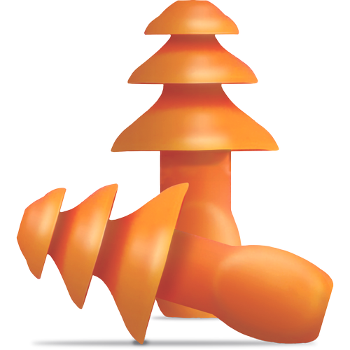 Zatyczki przeciwhałasowe z miękkiego materiału do wielokrotnego użytku, dzięki nowemu kształtowi łatwo wprowadza się je do kanału słuchowego.