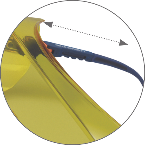 Okulary ochronne (38 g), wytrzymałe szybki poliwęglanowe z powłoką zabezpieczającą przed zarysowaniem, regulowana długość ramion (czterostopniowa), regulowany kąt nachylenia szybek, uniwersalne wykonanie umożliwia wykorzystanie z wieloma różnymi okularami korekcyjnymi, wygodne, miękkie ramiona o niskim profilu gwarantują dobre dopasowanie do każdych okularów korekcyjnych. Dostarczane są w dwóch wersjach: bezbarwne oraz żółte dla zwiększenia kontrastu przy słabym świetle.
