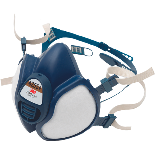 3M™ maintenance-free half mask series 4000+ with integrated filters A2P3RD – organic vapors and particles; the 3M 4255+ mask features a new improved exhalation valve assembly that reduces breathing resistance by over 40% * compared to the previous 4000 series