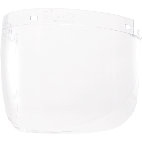 the 3M™ 5F-11 face shield is a clear curved polycarbonate face shield with an optical class 1 anti-fog coating; is designed to mount on 3M™ G3000 or G22 series hard hats and with the U5B face shield system to mount on 3M™ SecureFit™ X5000 hard hats; thanks to the snap function, the face shield can be quickly and easily attached to the face shield holder; the face shield provides protection against high-velocity particles of medium energy (120 m/s), class B