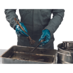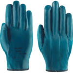Elastyczne rękawice szyte z bawełnianej dzianiny laminowanej nitrylem, stebnowane na grzbiecie, odporne na przecięcie i obtarcie.