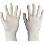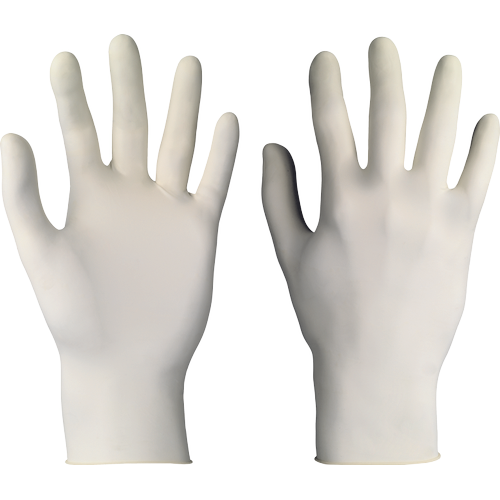 Jednorazowe, oburęczne rękawice z naturalnego lateksu o grubości 0,12 mm, lub bezpudrowe.
