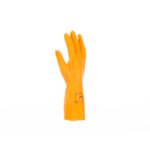 Chlorowane rękawice ze 100% naturalnego lateksu o grubości 0,75 mm bez wypełniaczy, z welurem wewnątrz, ze specjalnym wykończeniem w części chwytnej dłoni i na palcach, o długości 32 cm.