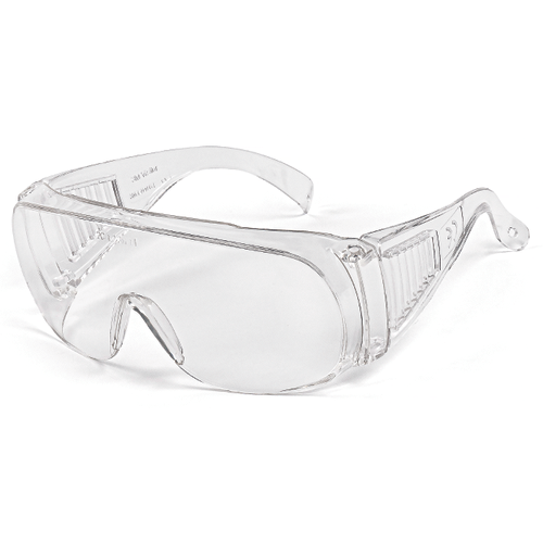 Prescription goggles for visitors, which are comfortable to wear over prescription glasses and can be worn separately. They are equipped with a light clear polycarbonate lens, shaped side protection and eyebrow protection.